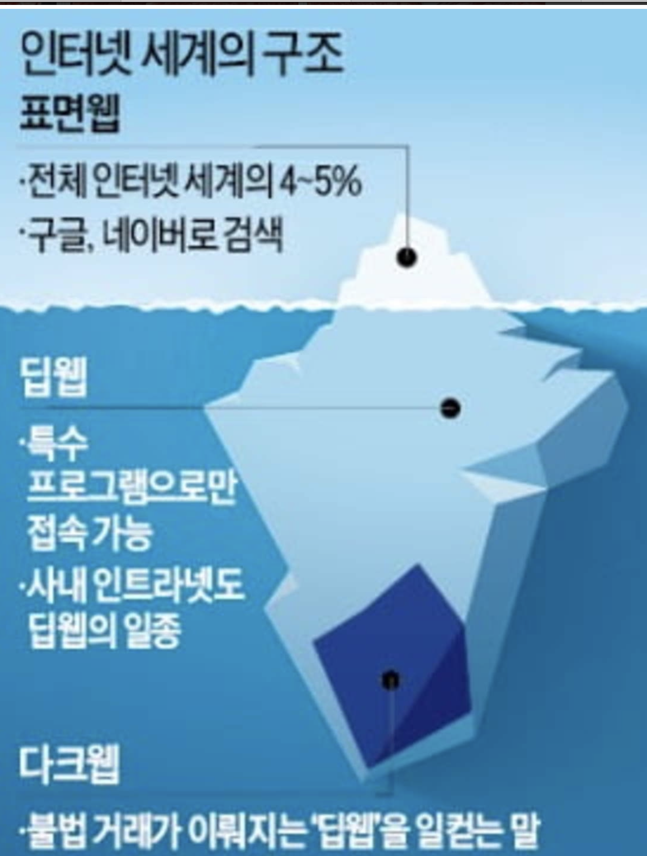 한 층 더 분류해보면 '다크웹'이라는 개념이 나오는데,