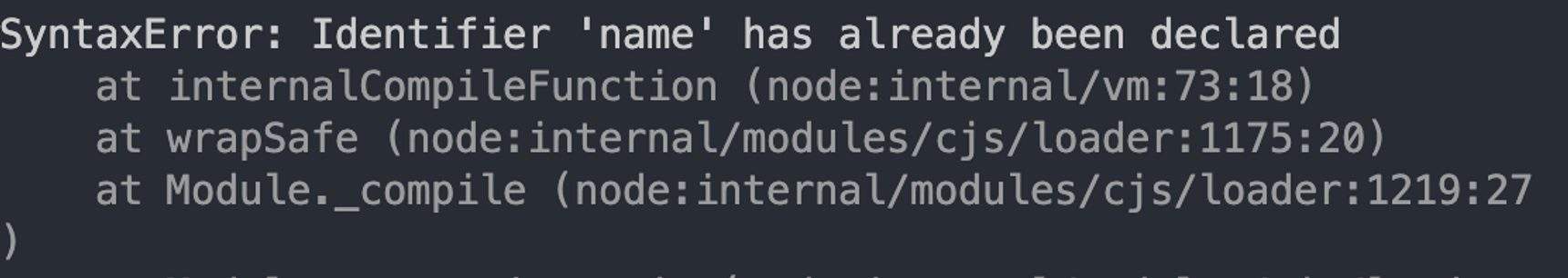 변수 name은 이미 선언되었습니다! 라고 이렇게 막아버리는 걸 볼 수 있음 !
