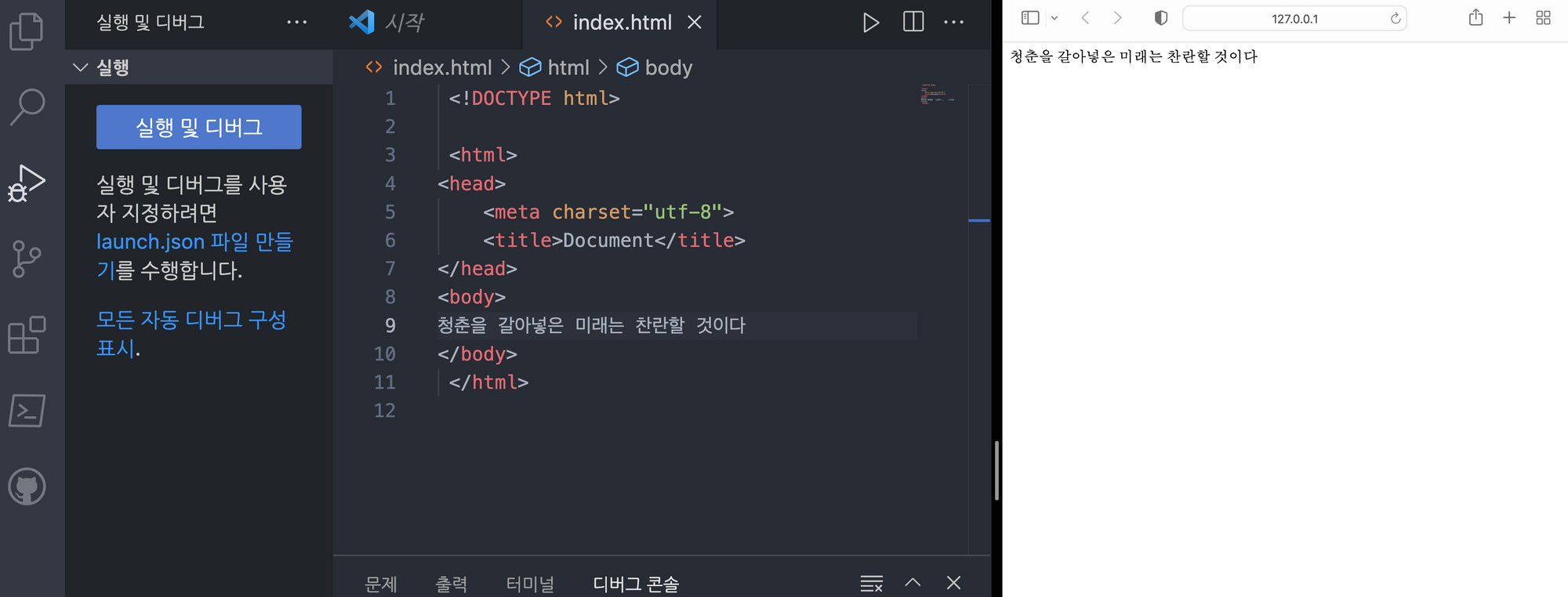 4. 바디 태그에 내용 입력해보기