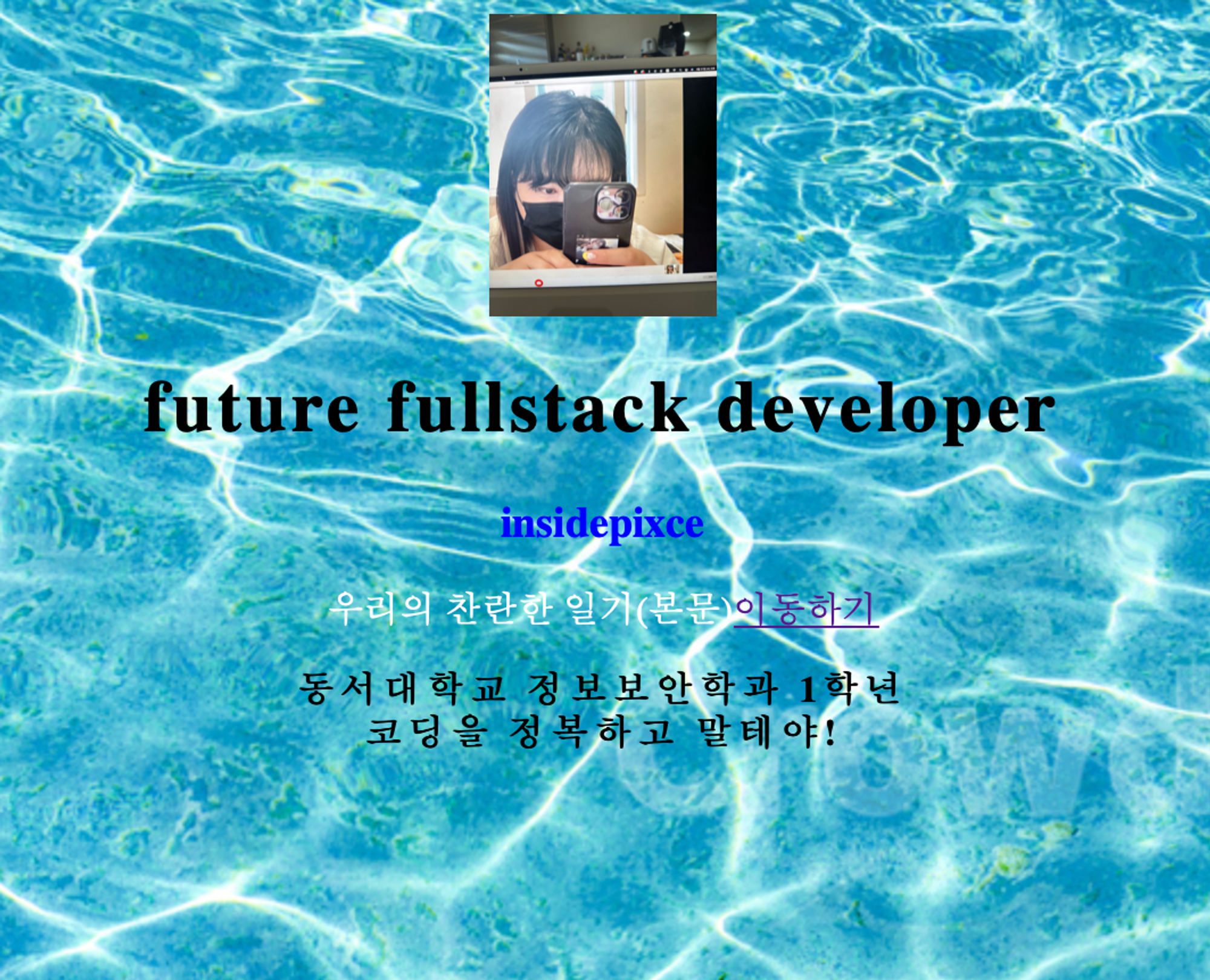 <p style="text-align: center;"><strong>동서대학교 정보보안학과 1학년<br> 코딩을 정복하고 말테야!"</strong></p>