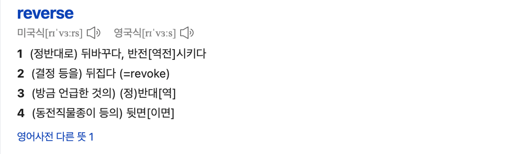 - Reverse: (정반대로) 뒤바꾸다