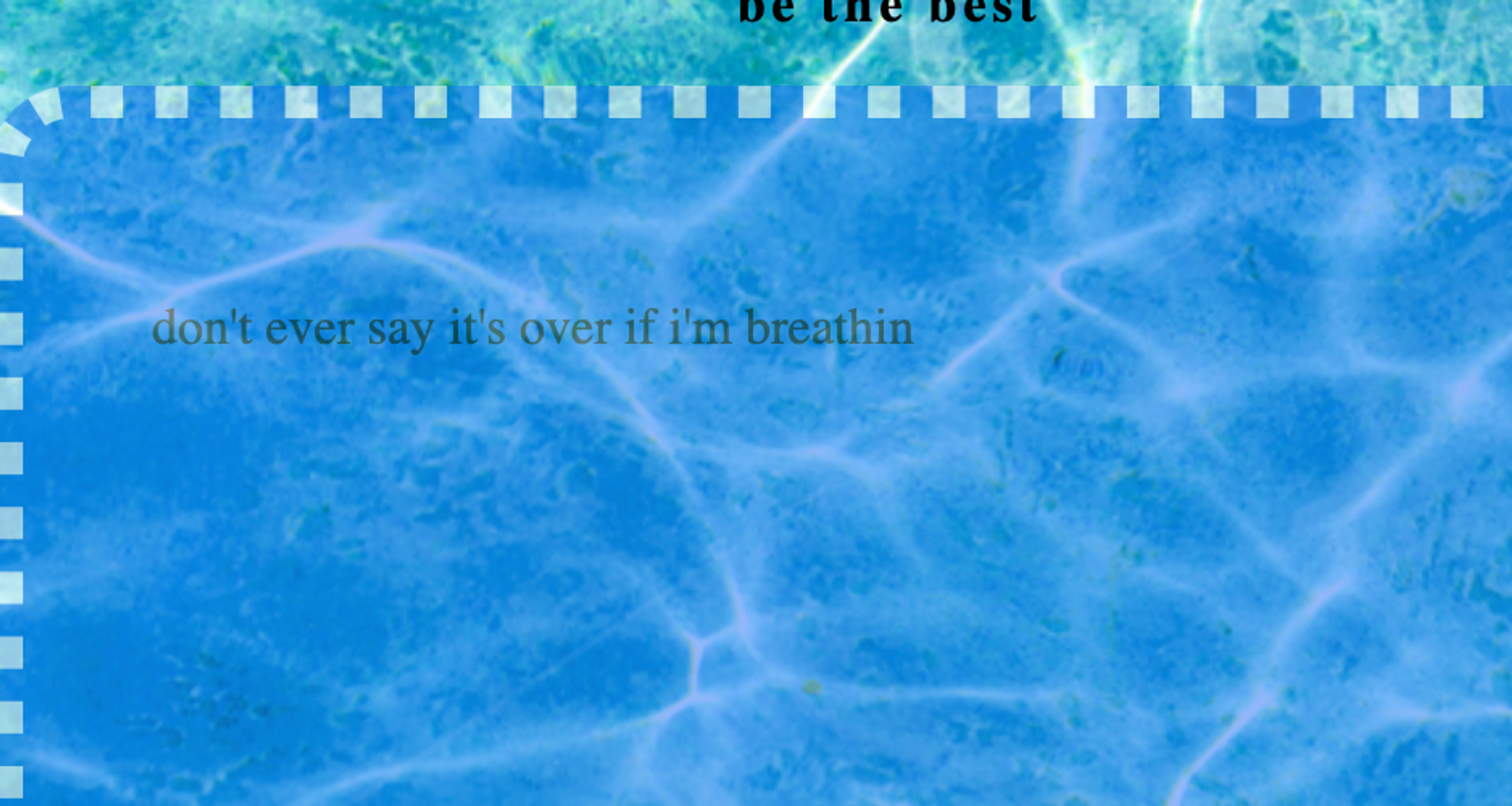 <p class= "texty"> don't ever say it's over if i'm breathin</p>