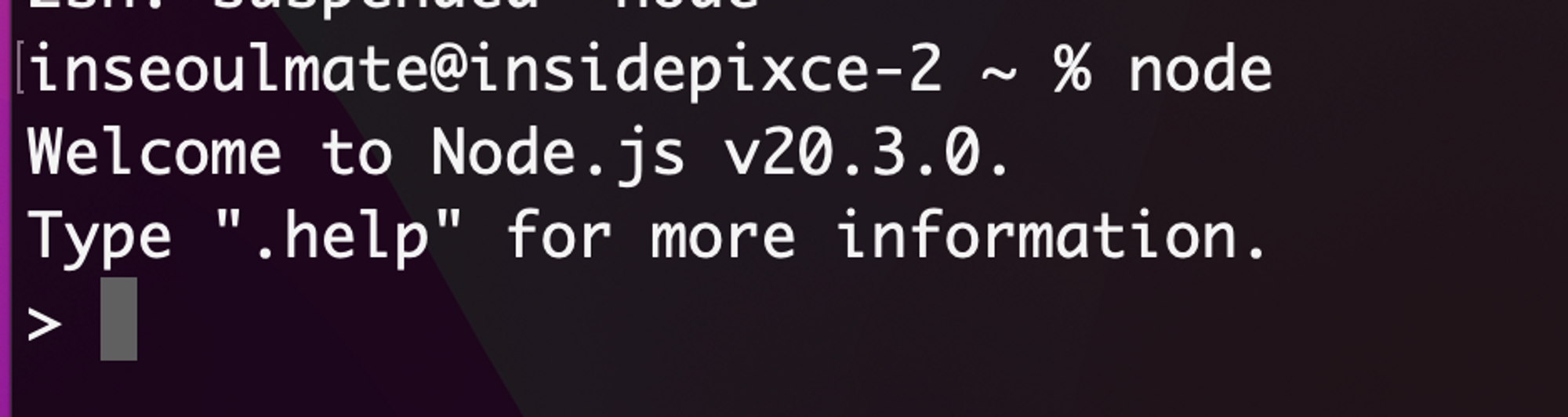 REPL: node.js가 제공하는 대화형 콘솔을 말한다. 이 콘솔에서는 자바스크립트 코드를 실행하고 결과를 즉각적으로 확인할 수 있다. REPL은 Read-Eval-Print-Loop의 약자로, 유저의 입력을 받아들이고(Read), 입력된 자바스크립트 코드를 실행(Eval)하며 결과를 출력(Print)한다. 그리고 이를 반복(Loop)한다.
