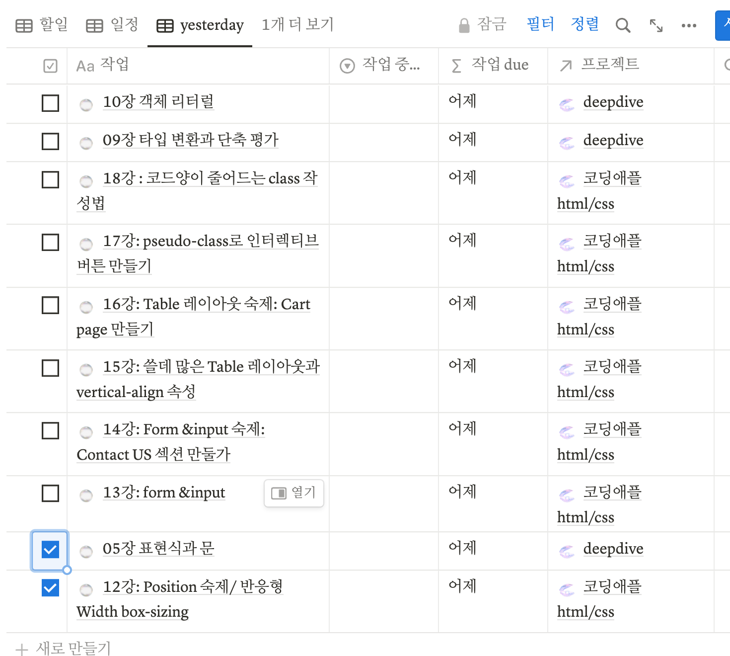 새로운 프로젝트 진행