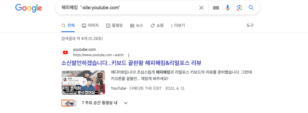 - 특정 웹 사이트 내에서만 검색하고 싶은 경우, “site:사이트주소” 형식으로 검색어를 입력한다