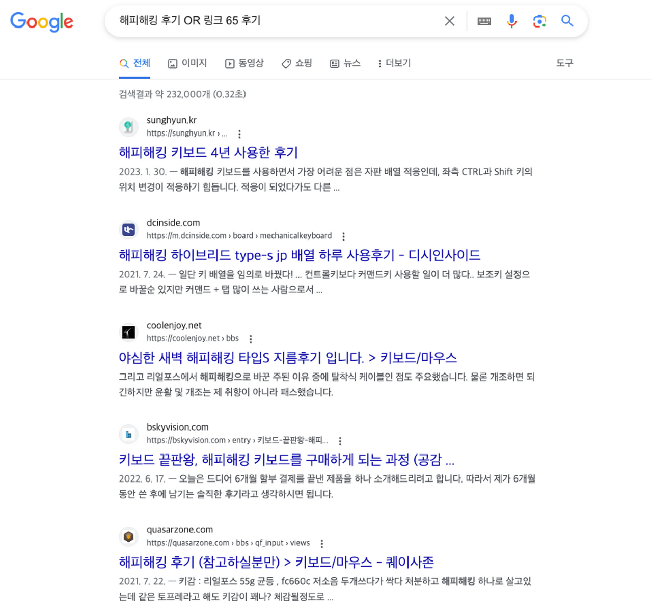 - 검색하고자 하는 내용과 관련된 핵심 단어를 사용한다