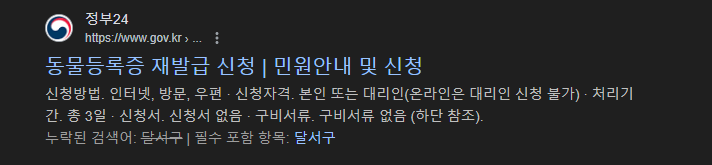 동물등록증 재발급 신청 | 민원안내 및 신청 | 정부24