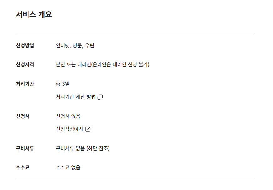 인터넷, 방문, 우편으로 가능하고 신청자격은 본인이여야 가능하다.