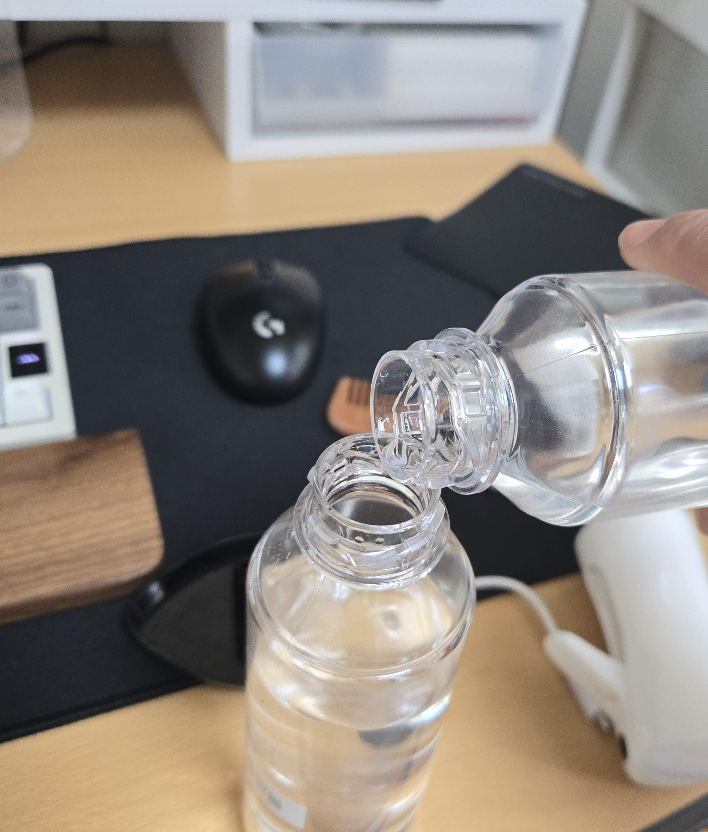 냅다 알코올 스프레이 버려버리고 공병에 담아줬다. 공병 최고. 로고 그려진 거 못참는 나같은 사람들에게는 공병이 필수임...ㅎㅎ