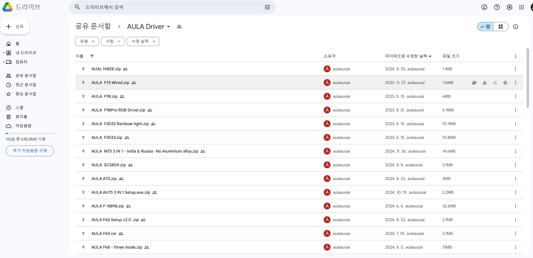 그다음 aula f99 setup 파일을 받아준후 똑같이 실행시켜준다.